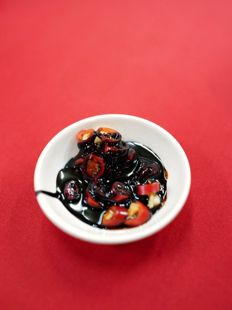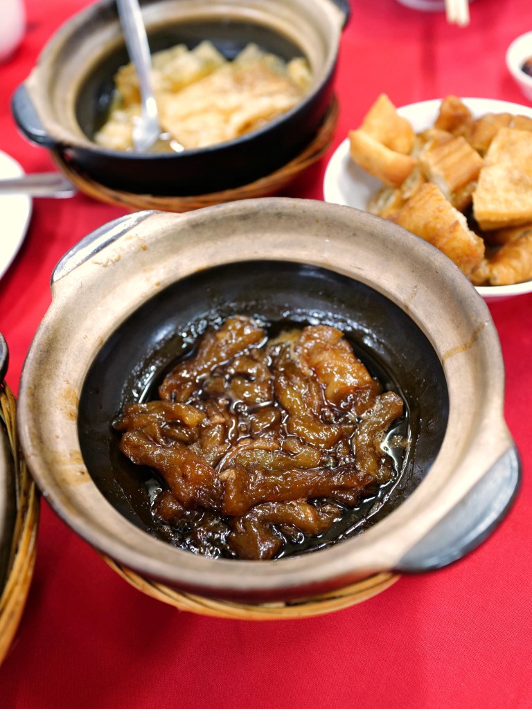 開放式的店面與室外連接,招待的店員是講中文的華人,四個人按推薦點了自由搭配的肉骨茶、滷豬蹄筋、燙青菜和油條/腐竹兩樣小食,每樣份量都不大;重頭戲肉骨茶的各式豬肉滿軟嫩,湯汁不會過鹹,燉到軟爛的滷豬蹄筋則是吸滿熟悉的甜甜醬油滷汁,沾特製的辣椒蒜頭黑醬油更添香氣