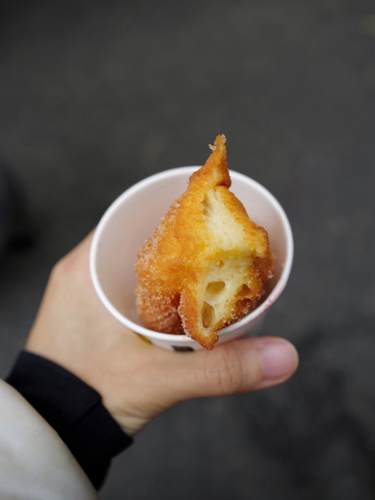 買了原味麻花捲,很像口感更輕盈、帶肉桂香氣的白糖粿,對這類食物有興趣的話可以試試