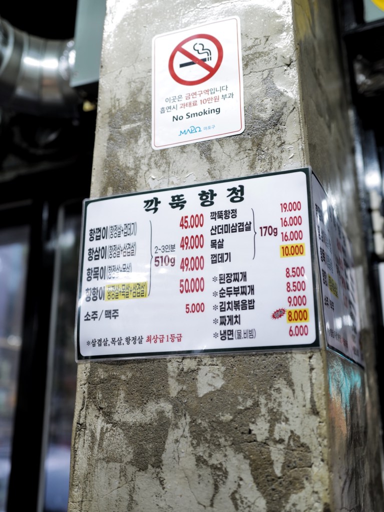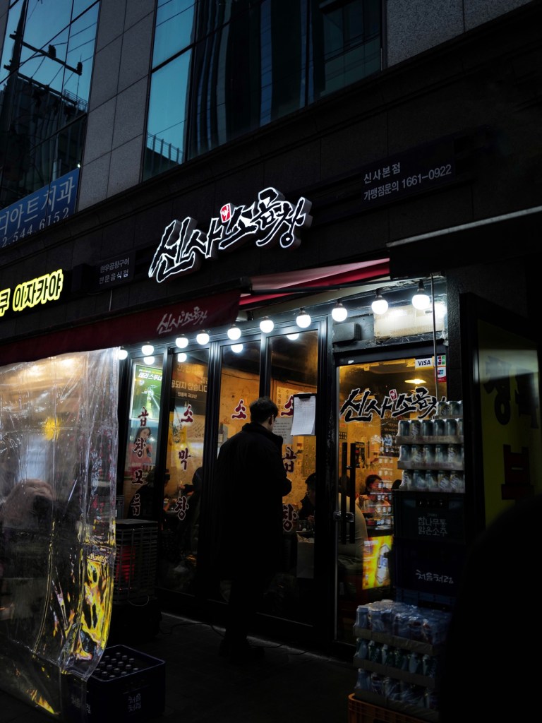 在Google map存了好多家很想嘗試的牛烤腸,剛好逛到新沙洞於是選擇了這間;五點營業時間一到就報到,馬上有位子入座,晚點來的話要在寒風中排隊,想到就害怕得瑟瑟發抖🥶