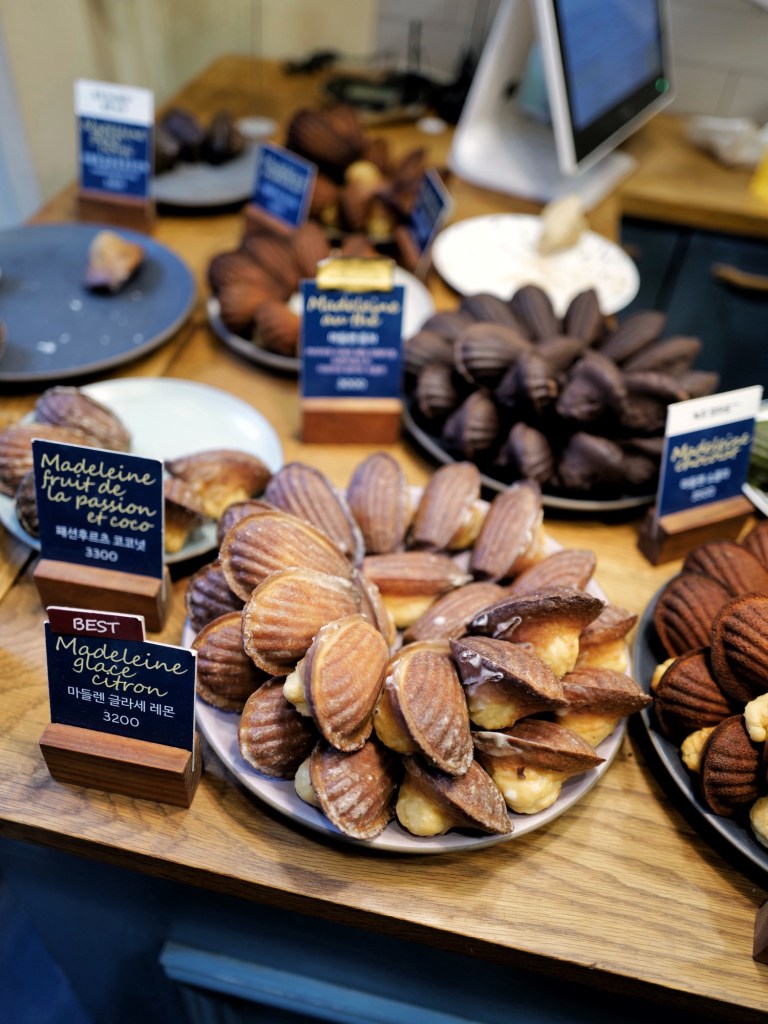 新沙洞人氣的瑪德蓮甜點店,小小的店家裝潢得很有法國風情,因為店內容留人數不多所以要稍微排一下隊
