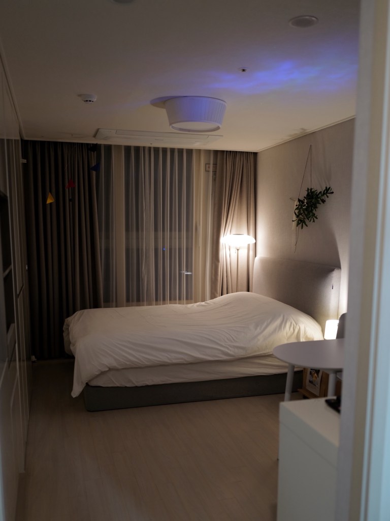 位在離明洞一站之遙的地鐵忠武路站(Chungmuro station)和乙支路四街站(Euljiro-saga station)之間,透過Airbnb訂的公寓式飯店;雖然不在觀光客常選擇住的明洞站或弘大站,但步行十分鐘內有地鐵/公車、附近地鐵直達金浦機場、價格合理,加上房間可愛、設備齊全連地暖都有,非常溫暖舒適!