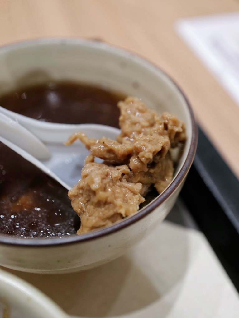 點了滷肉飯套餐搭配清湯瓜仔肉,滷汁是現場燉煮的鐵鍋裡撈出來的;滷肉和清湯瓜仔肉味道ok,不過飯到配菜都偏油、店員撈的時候碗邊緣滴到不少湯汁,沒有小吃店那種暖心的感覺,也沒有達到百貨美食街的標準,不知道是不是個案?
