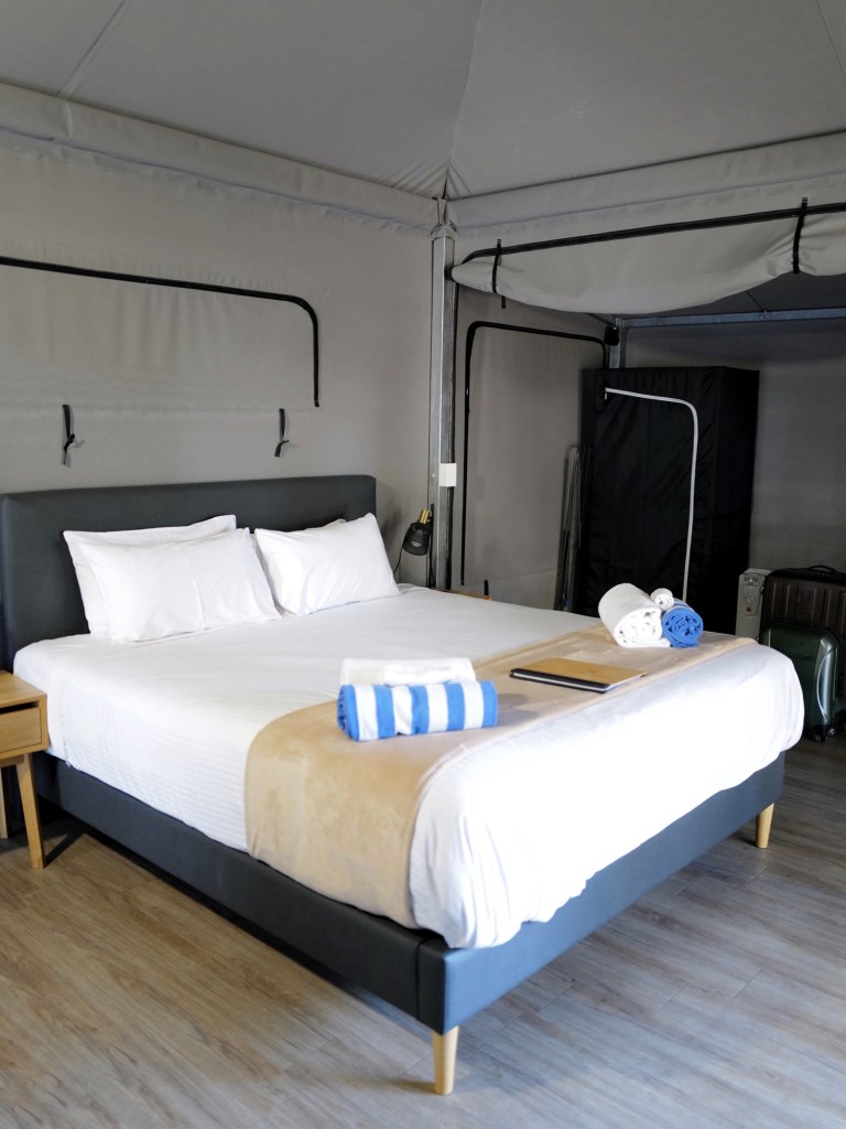 因為是旺季,我們訂房時只剩下這個露營區有房間;透過booking.com預訂,屬於Glamping那種房間有浴廁、床鋪的高級帳篷,附早餐