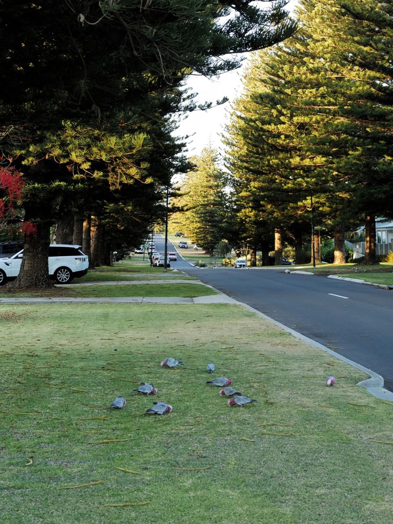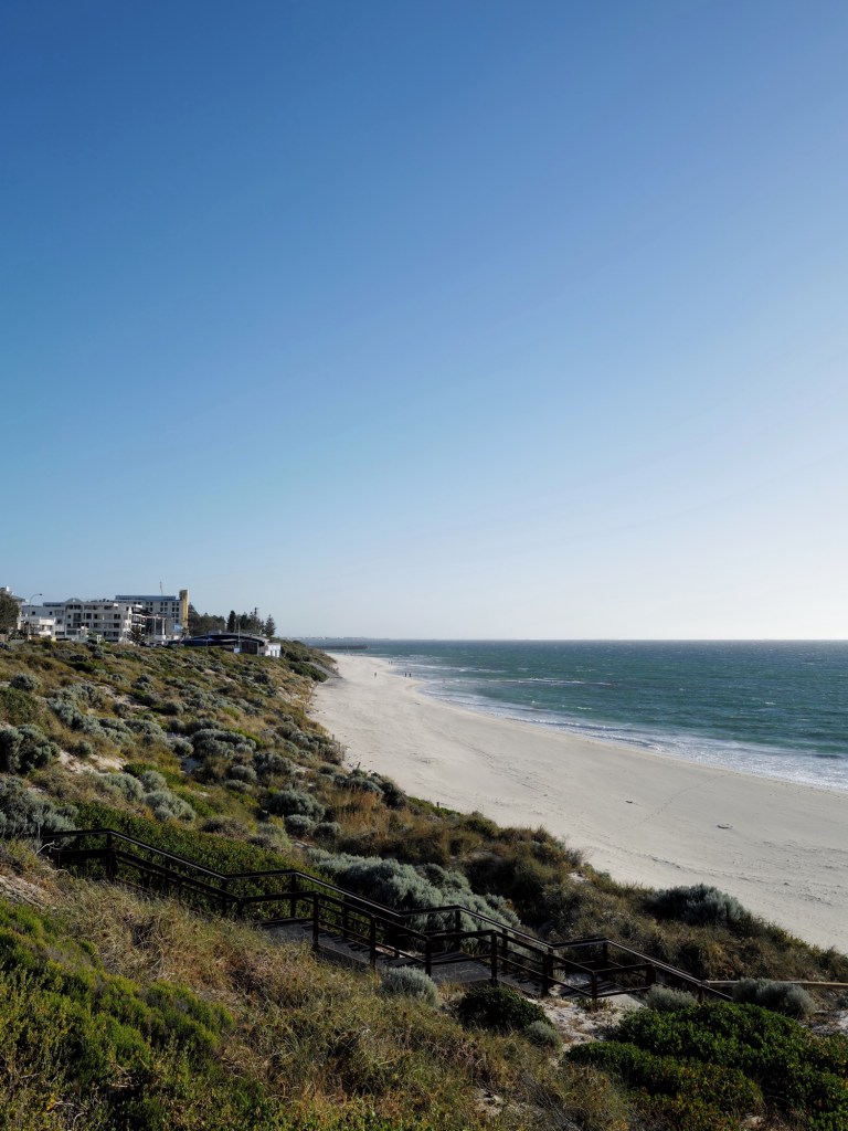 Fremantle逛完回伯斯市區的路上,往順路的Cottesloe Beach走走,距離火車站步行要快三十分鐘,不過海岸線很美、住宅區閒適,還看到成群的野生粉紅鳳頭鸚鵡🦜
