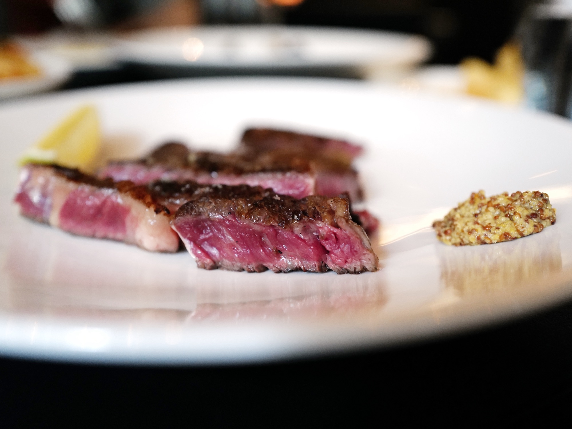 三個人點了兩道前菜、一道魚、兩種牛排和一個配菜,前菜和魚味道ok,只是對我來說口味偏重;牛排可以吃得出是好的牛肉、有香氣的熟成和煎烤,但不能理解為什麼上桌的時候幾乎要冷掉了?當天最喜歡的竟然是配菜的和牛油炸馬鈴薯