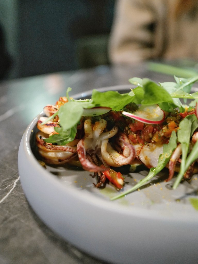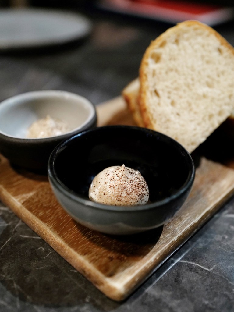 週一晚上位置大約半滿、偏安靜,被安排在門邊的座位,開關門時吹得到風有點冷;三個人點了一道沙拉、兩種前菜、兩份主食和一道甜點,餐點的食材組合在吃過的同價位餐酒館當中算很細緻的,風味也不錯,上桌的時候如果溫度可以再高一點點就更好了
