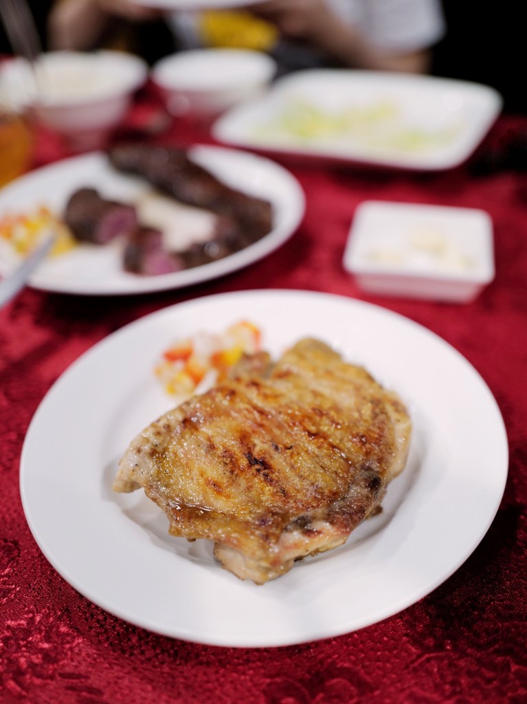 炭烤肉類和印象中的一樣焦香美味,尤其牛肉和雞腿排更能吃出外焦脆、內多汁的口感,並且肉香十足;佐餐的熱炒都有一定品質,自己最喜歡香噴噴的蔬菜烘蛋和炒高山高麗菜