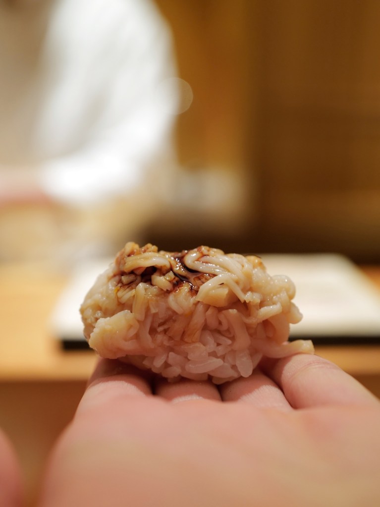 在吃貨朋友攜帶下,在五月尾聲吃到熟客制壽司名店「鮨天本」料理長另設的餐廳 —— 鮨天本登龍門,主打由天本師傅的弟子坐鎮,帶給食客有天本感但較平價的握壽司體驗,並且有機會透過網路預訂(點我看米其林指南怎麼說)