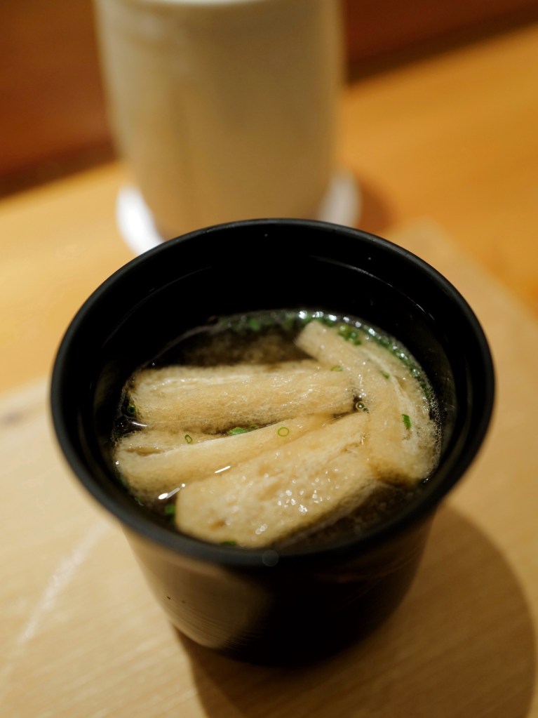 店裡約有十個板前座位,裝潢一如壽司店簡約明亮;我們用餐的時間是晚餐前半場(18:00-19:45),不過上菜節奏非常快,微消化不良,19:20左右店家就準備送客了