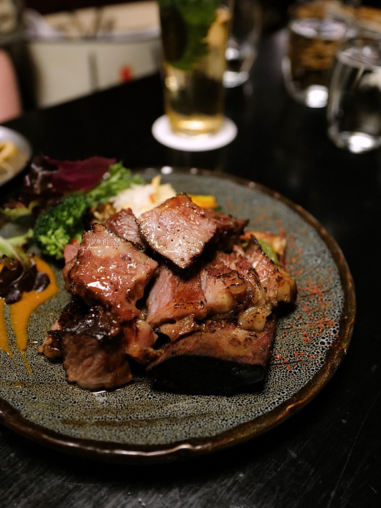 對調酒研究不深,最有印象的是文山包種茶入酒的 #Public 1,清香、對我來說酒感剛好;食物整體比三年前第一次來的時候好吃許多,尤其原塊牛小排油香軟嫩、份量大,下酒正好