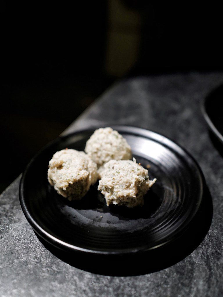 這天點了兩種拉麵,兩種都是偏濃郁的湯頭:朋友的白松露雞魚貝拉麵搭配的是細麵,松露、貝類風味重,配置舒肥豬、雞叉燒;我的牛肝菌豚骨醬油拉麵有濃濃牛肝菌香氣,有點西式蘑菇濃湯的影子,搭配吸湯的中粗麵剛剛好!不過即使選了偏淡的濃度,吃到最後還是覺得有點負擔