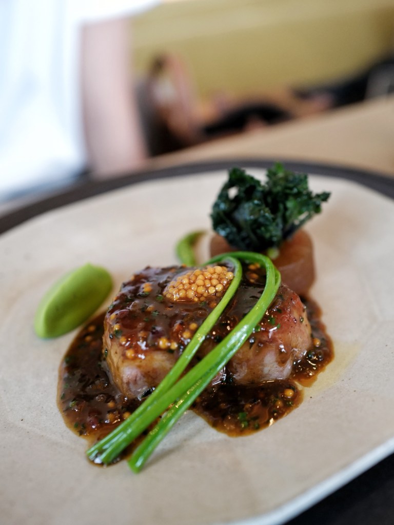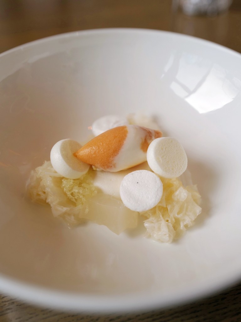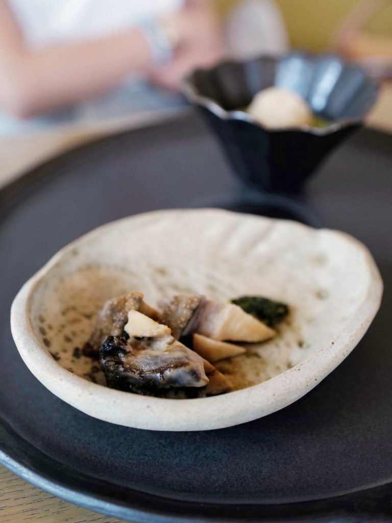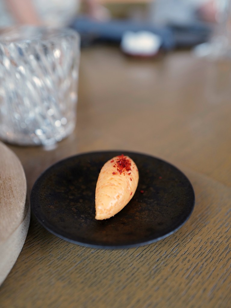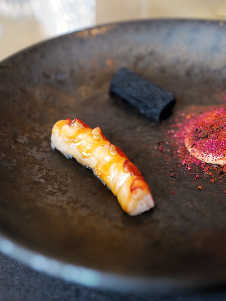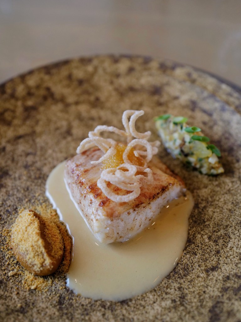 魚肉佐以煙燻百斑狗魚卵和味噌醬汁等