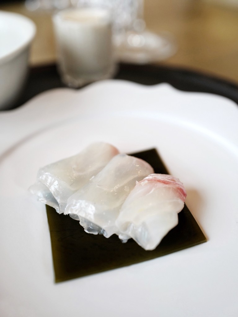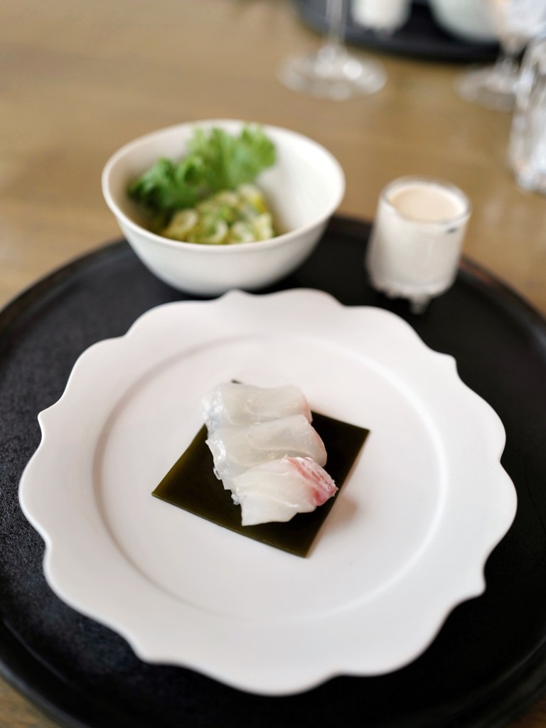 鯛魚生魚片、醃漬球莖甘藍沙拉和鯛魚濃湯