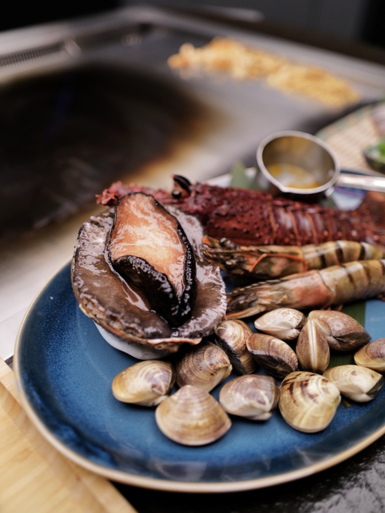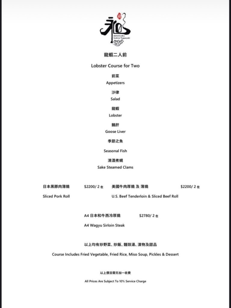在香港的最後一頓晚餐,朋友訂了日式鐵板燒 Hinotama Sushi & Teppanyaki 昶 的包廂座位!四個人得以半圓弧圍著鐵板看主廚烹飪;除了鐵板燒以外,別的包廂也有供應握壽司套餐