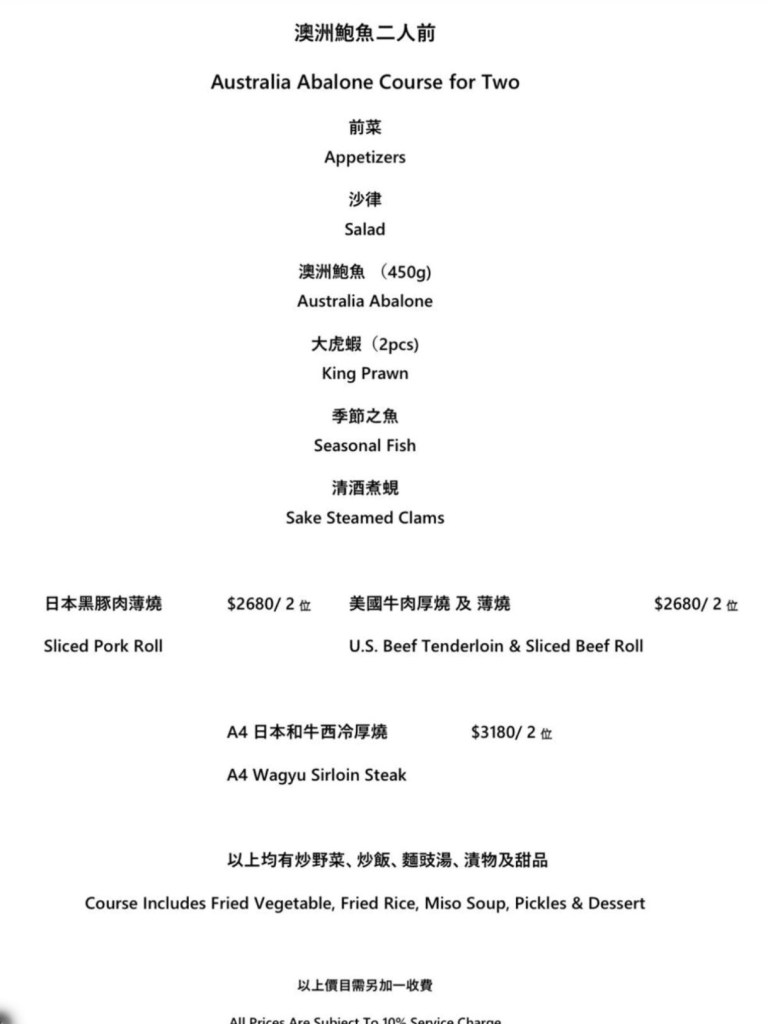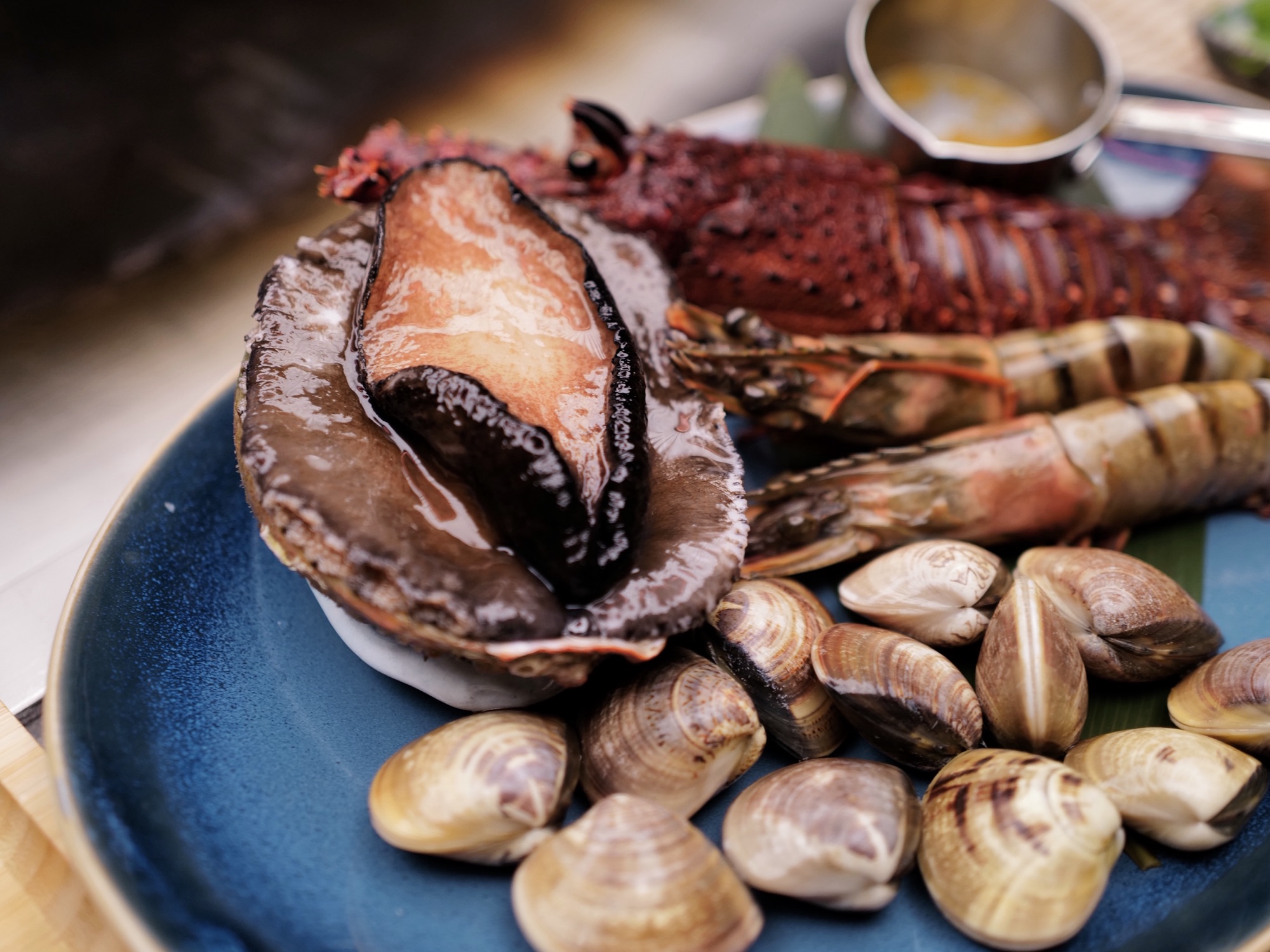 我們點了兩人份的龍蝦、鮑魚套餐各一份,主廚特別替我們分成四人份,每樣都吃得到,食材調味適中,自己比較喜歡的是鹽味鮑魚、蝦膏龍蝦及虎蝦