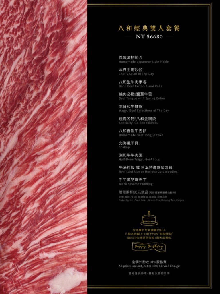 菜單分兩人套餐和單點,我們是訂位時點好適合多人聚餐的菜品,配置和套餐類似;多年前試過單點,不過覺得烤肉以外的料理也同樣精緻美味,所以推薦直接點套餐,吃起來更有趣也更划算