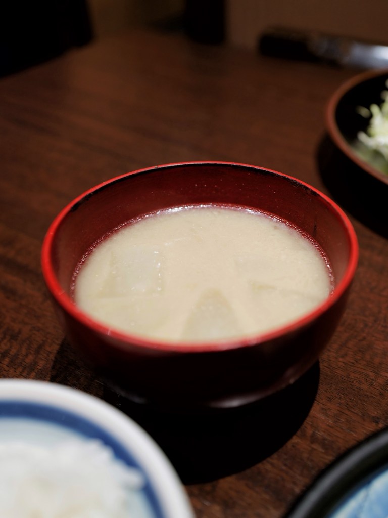 我們兩人點了兩種套餐一起分食,油脂香甜、肉質軟嫩不失咬感,不管肥瘦都非常美味!搭配的米飯和味噌湯也很完美