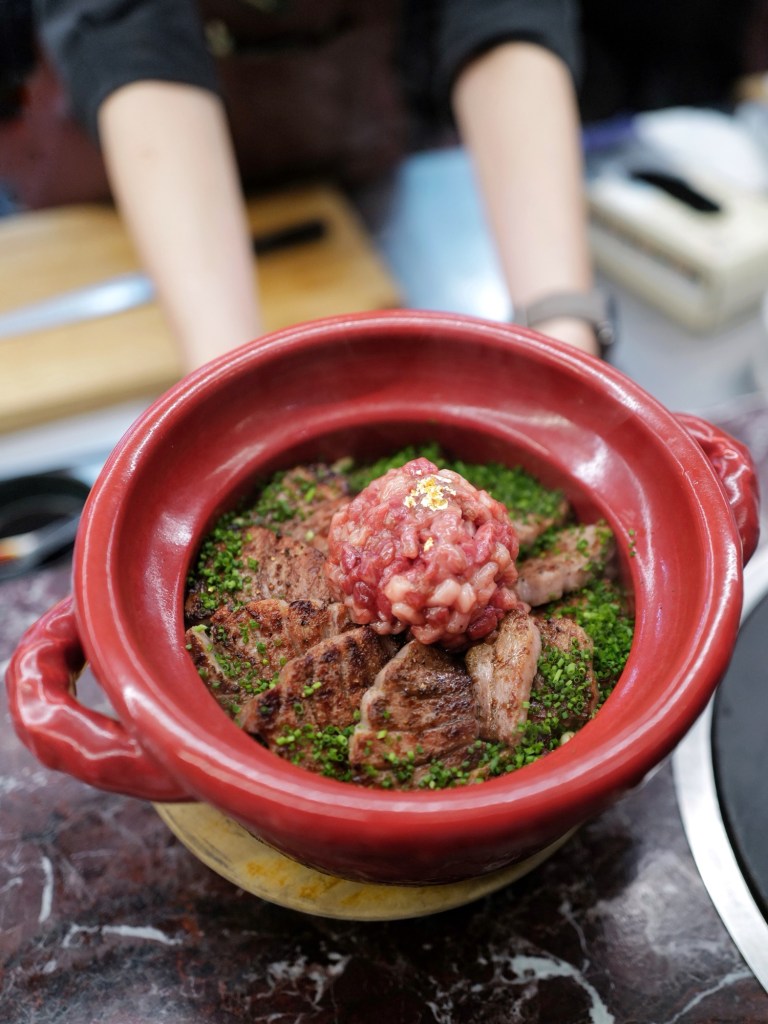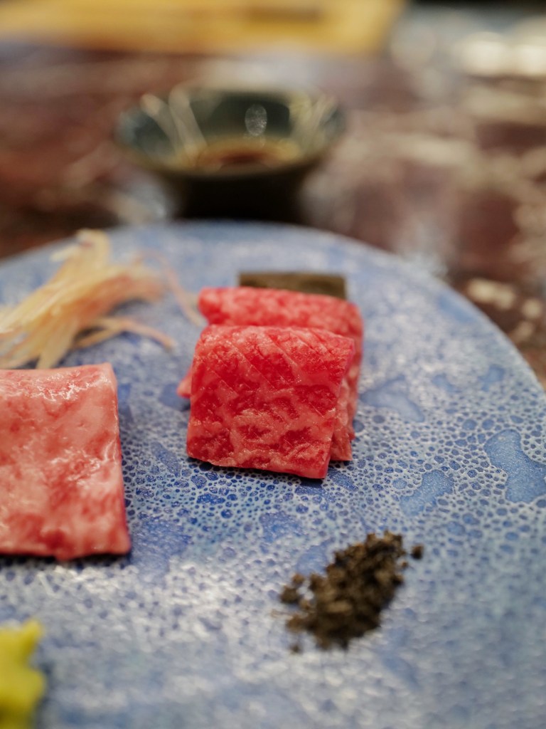 這裡的板前肉の小料理對我來說比單點燒肉吃起來有趣,可以感受到主廚用心呈現和牛的不同面貌,最喜歡和牛/海膽/魚子醬交融的先付、極致柔軟的shabu shabu、經典的牛肉大蔥串燒和肋眼芯牛排,而釜飯和荔枝雪酪完美收尾
