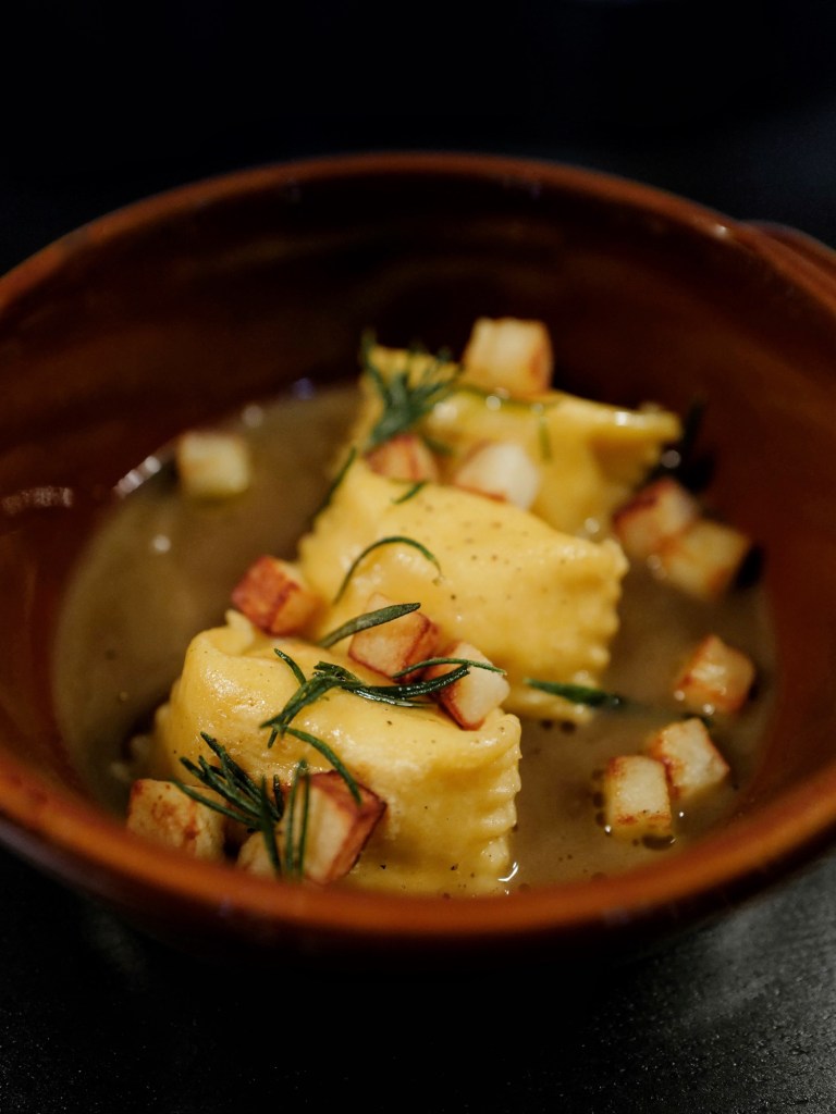 雞肉內餡的半月形義大利麵餃(agnolotti)