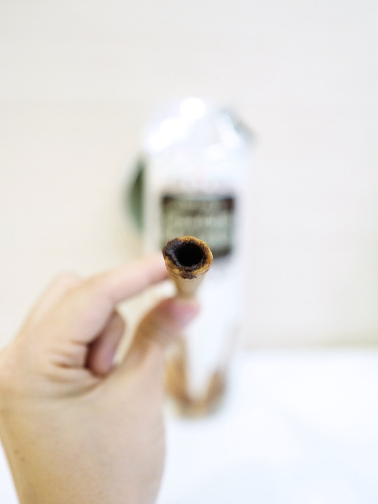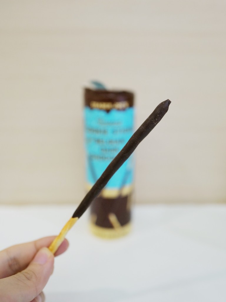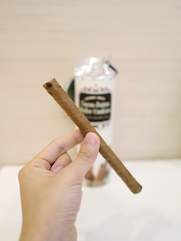 我覺得吃起來很像台灣的黑師傅捲心酥,不過黑巧克力風味較濃、口感較厚實