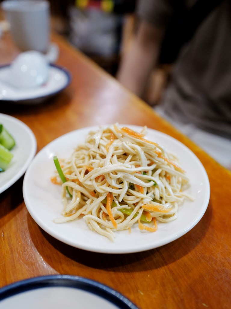 四個人吃飯就是有更多選擇,這天兩種粗細的牛肉麵、各種餅類和小菜都吃到了;原先以牛肉麵為主要目標,不過麵餅類如韭菜盒子、蔥油餅加蛋也意外的香而耐嚼