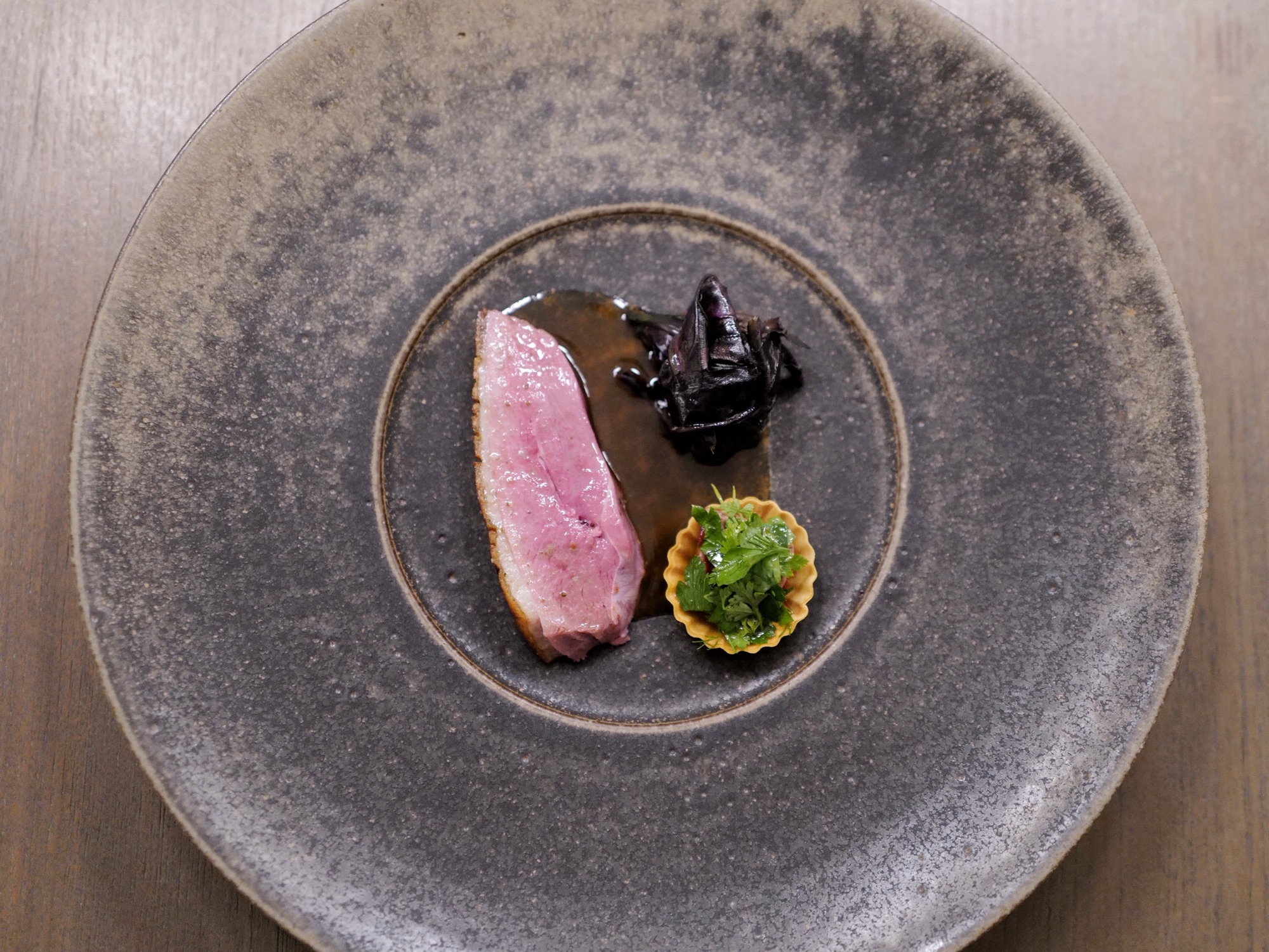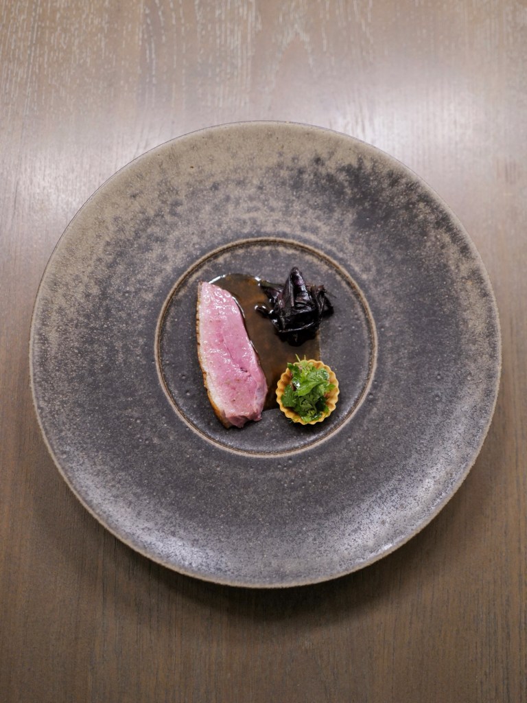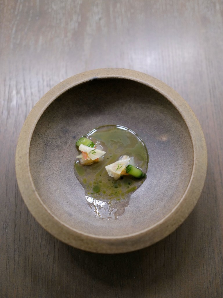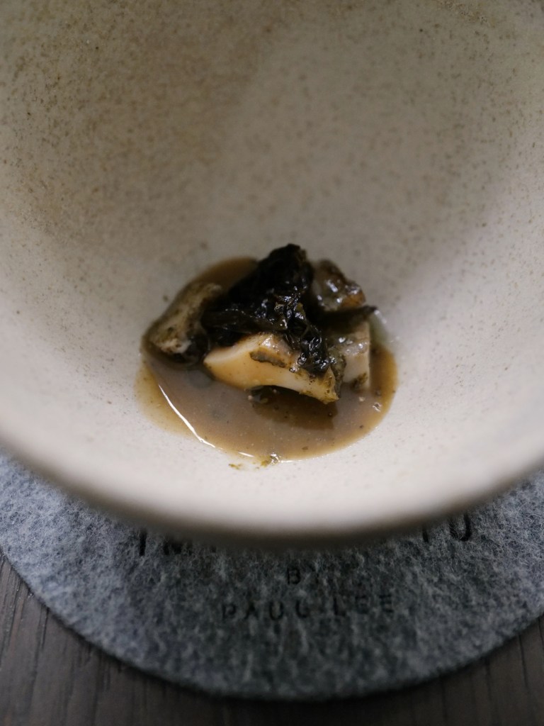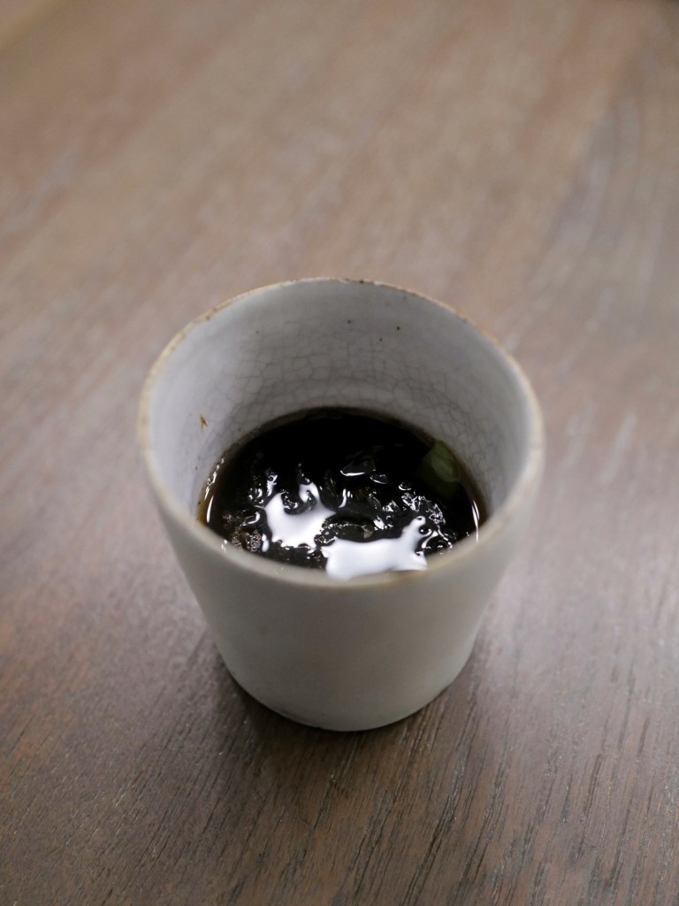 seaweed mousse, liquorice consommé