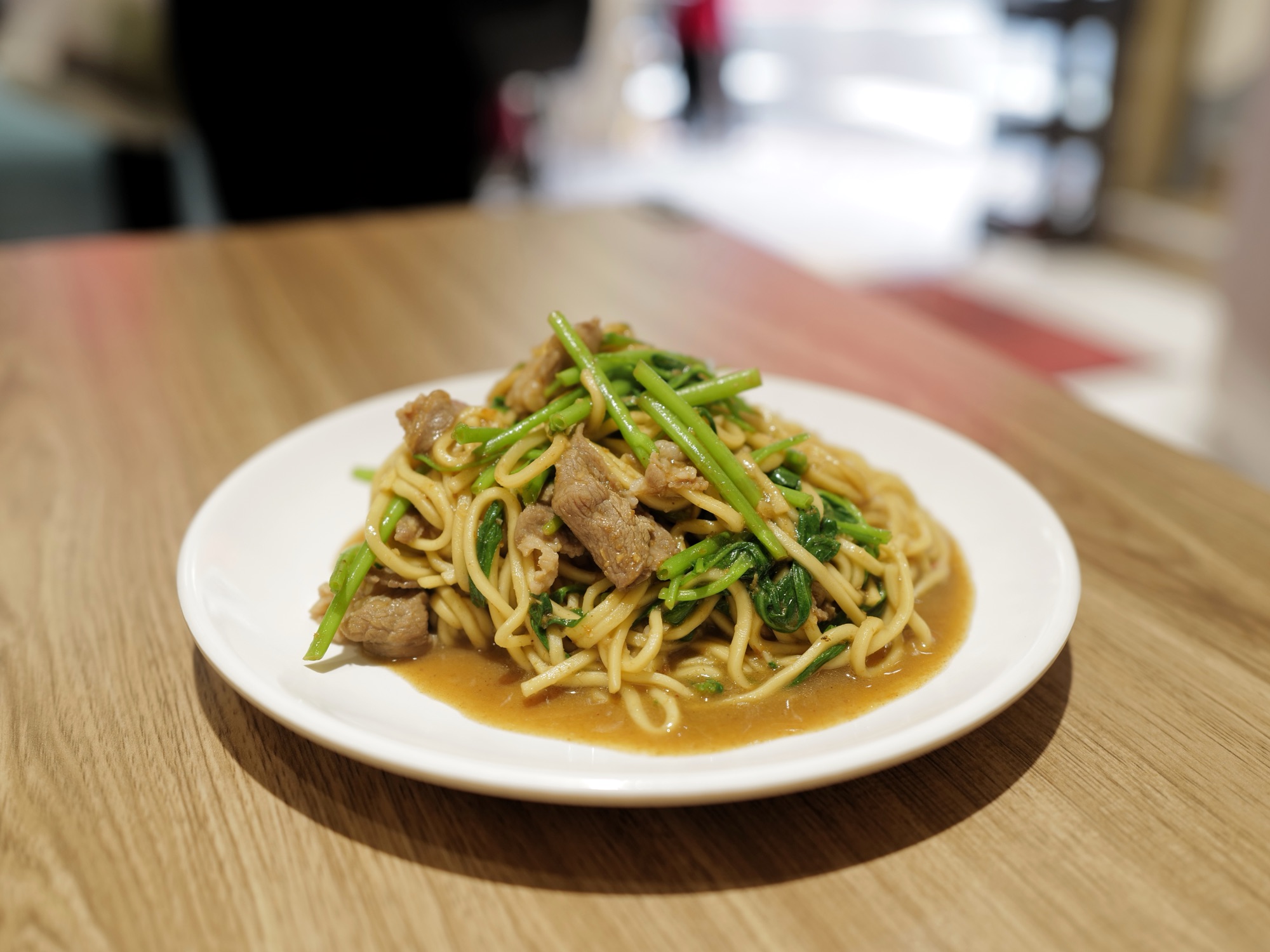除了本店兩層樓,對面還有一間店面,即便如此,兩個人還是等了約十分鐘才入座;大多數人點羊肉爐搭配熱炒,考量我們人少、此時食量不大,於是只點了三道菜試試味道