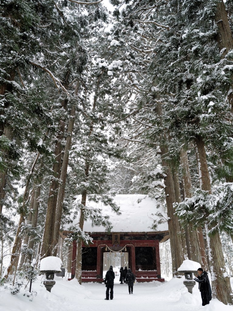 戶隱神社是長野地區有名的神社,由奧社、中社、寶光社、九頭龍社、火之御子社這五社組成;我對神社本身興趣不大,但冬日裡被白雪覆蓋的百年杉並木道看起來太漂亮了!便列入這次旅行的目的地之一