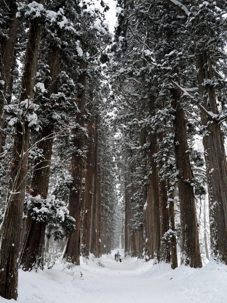 冬季去戶隱神社的觀光客比想像的多很多,幸好這次到得早,才能如願欣賞到清幽的空景,雪中的杉並木道和預期中一樣好美呀!
