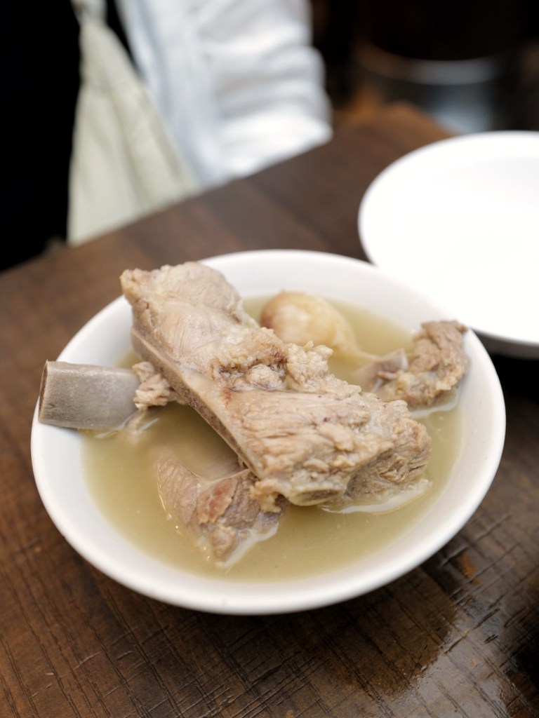 點了招牌的排骨肉骨茶與聽人推薦的腰肉片湯:湯底胡椒味濃、帶豬肉與蒜頭香,口味偏重但莫名就想多喝幾口;排骨柔軟、肉味足,腰肉片非常嫩,我覺得第一次吃的話,排骨更經典