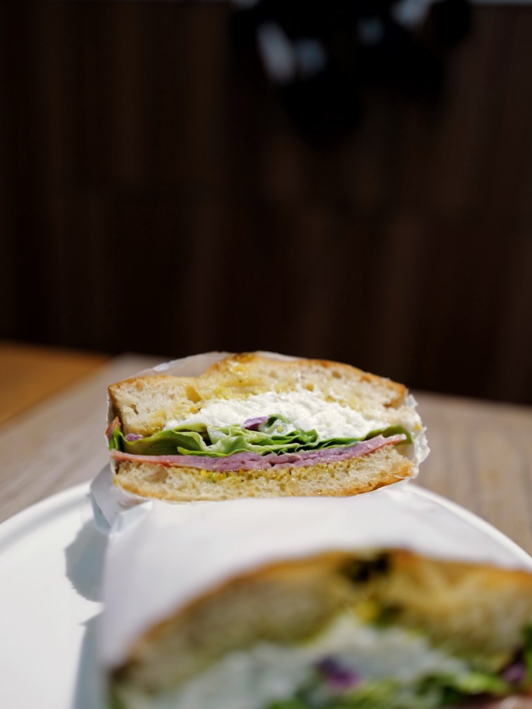 Layered with stracciatella cheese, pistachio spread and ham, this sandwich struck a nice balance of flavors.