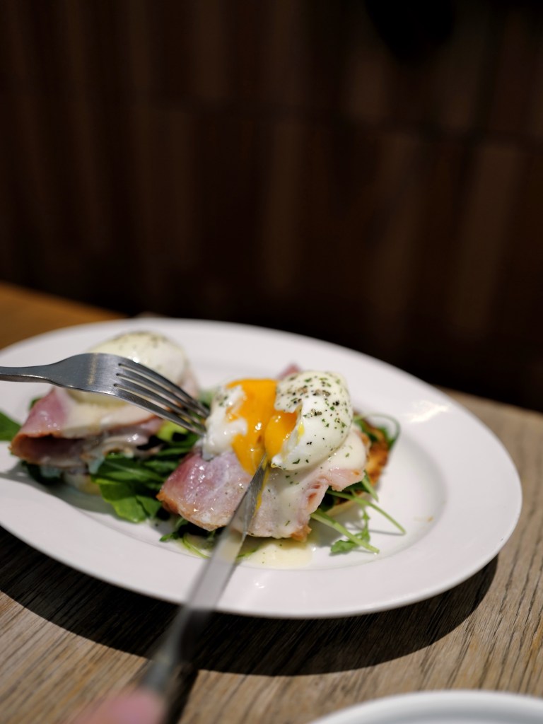 The English muffin was crisp on the outside and soft within. I loved the added aroma from the arugula, and the use of RÒU-brand ham gave the dish a premium touch. The hollandaise sauce was on the lighter side—milder in flavor but pleasantly so, making the dish feel less heavy.