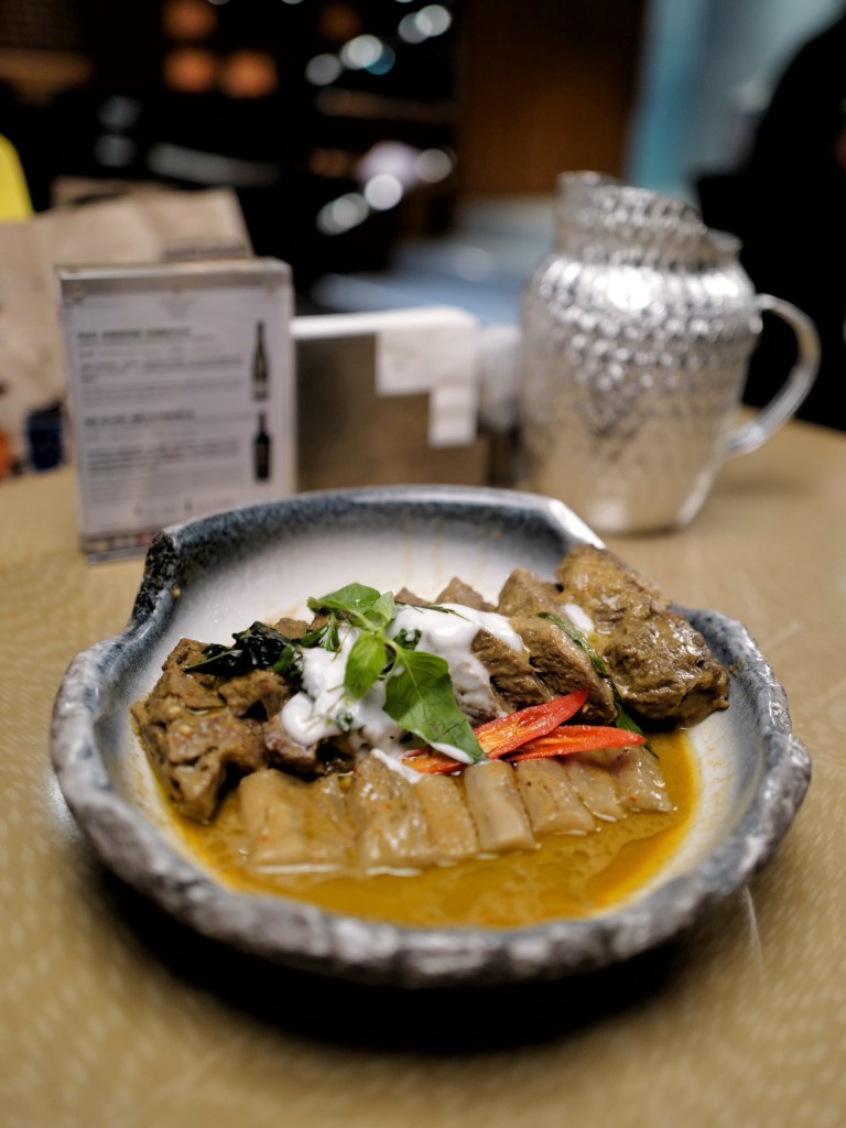 The short ribs are braised until tender but still satisfyingly meaty. Paired with green curry, coconut milk, and eggplant soaked with sauce — absolutely delicious.