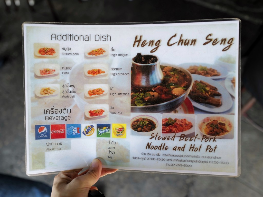 Heng Chun Seng beef hot pot looked completely different from the Thai food I was familiar with, so out of curiosity, we decided to stop by for lunch.