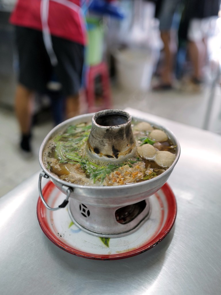 The menu mainly features beef/ pork offal soup and beef/ pork hot pot. The two of us shared one beef hot pot, with a mix of offal, sliced beef, and beef meatballs—all with satisfying texture. The broth was light and refreshing, almost like a mildly sweet soy-based soup. Even in the scorching heat, it didn’t feel heavy at all. You can also order pork satay skewers from a street cart around—perfect as a appetizer while waiting for the hot pot to arrive.