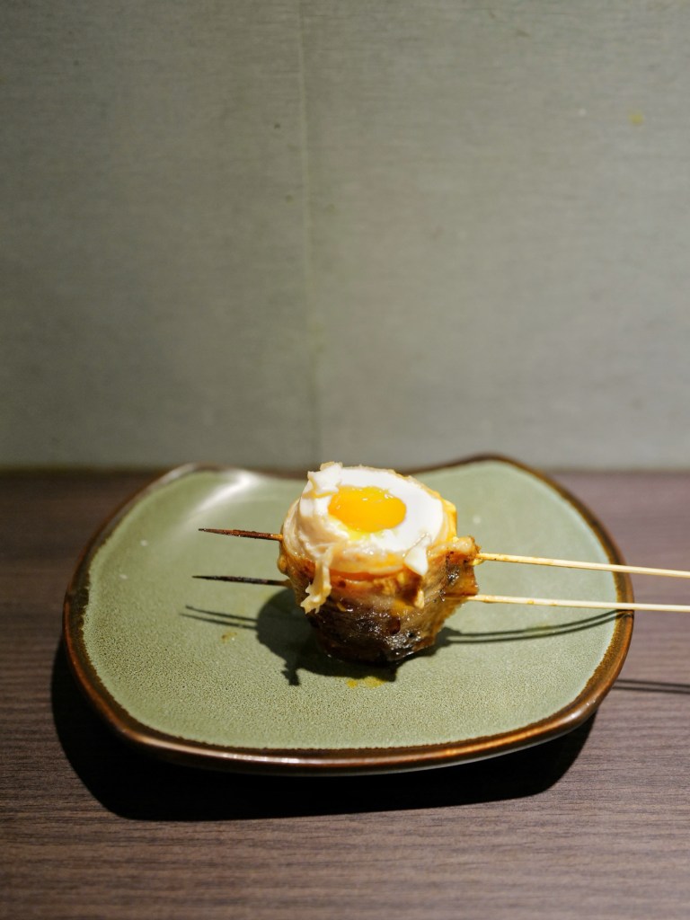 Wrapped in pork belly, with a yolk so perfectly cooked it still oozes.