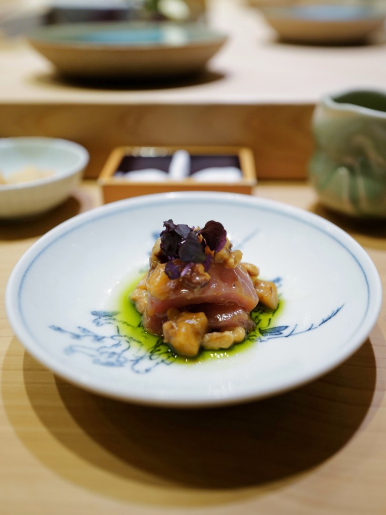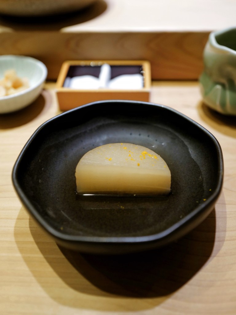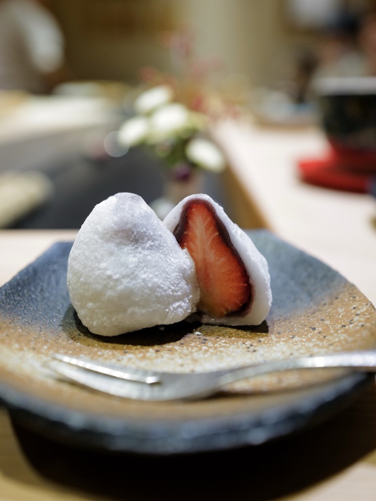 Maybe my appetite has gotten smaller? I felt especially full this time. As always, my favorite remains the nigiri, where aged fish meets slightly acidic shari. Compared to my last visit, the other dishes leaned a bit less toward Chinese elements and were mostly very much to my taste—standouts included the cod milt chawanmushi, deep-fried matsuba crab shinjo, and oil-poached botan shrimp. I also had my first strawberry daifuku of this winter, sweet and fragrant.