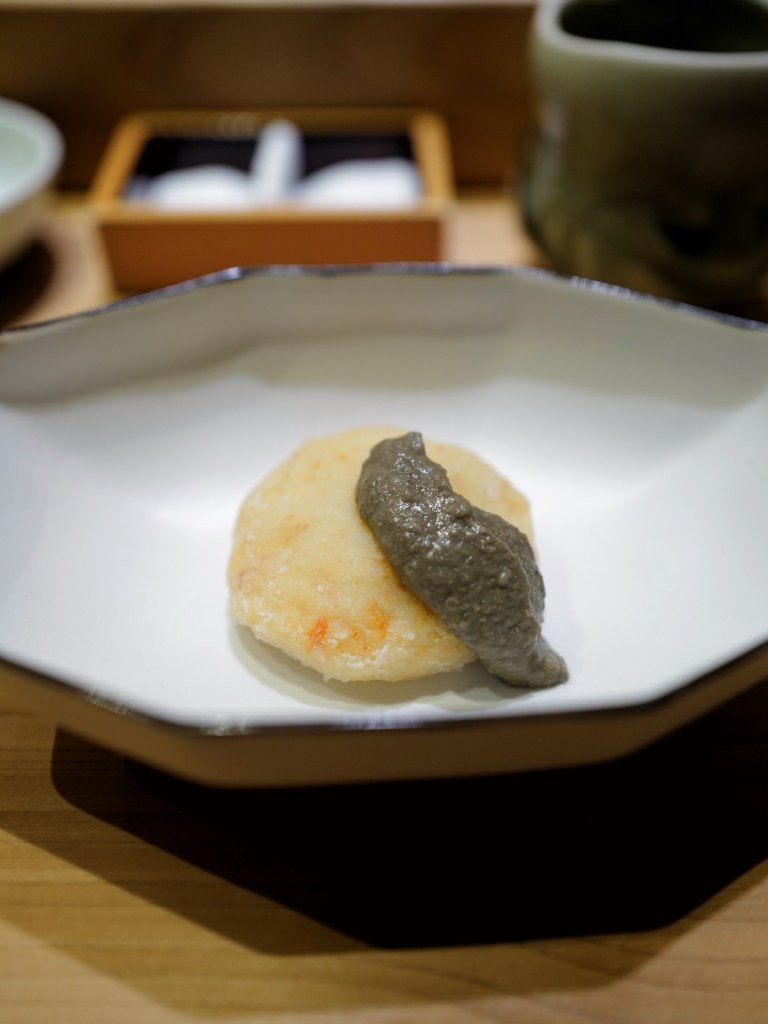 Lightly battered crab-filled fish cake, finished with crab miso. Sweet, rich, and delicious!