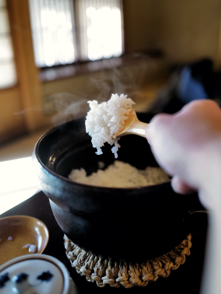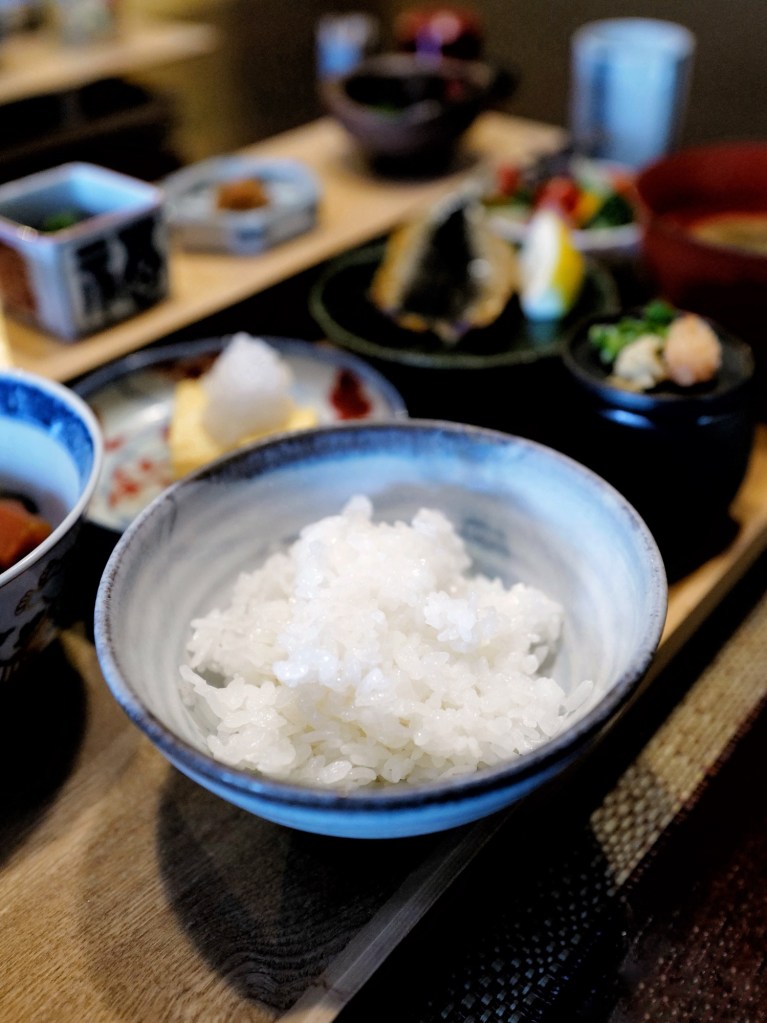 Aside from the prosciutto salad, the meal was entirely Japanese in style, beautifully presented in delicate small dishes arranged on a two-tier wooden tray. While it wasn’t as inventive as dinner, both the quality of the ingredients and the flavors were consistently solid. Well-prepared foods paired with clay pot rice were absolutely delicious.