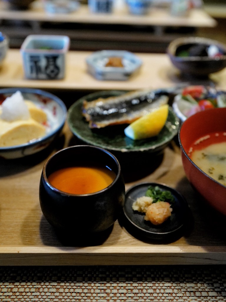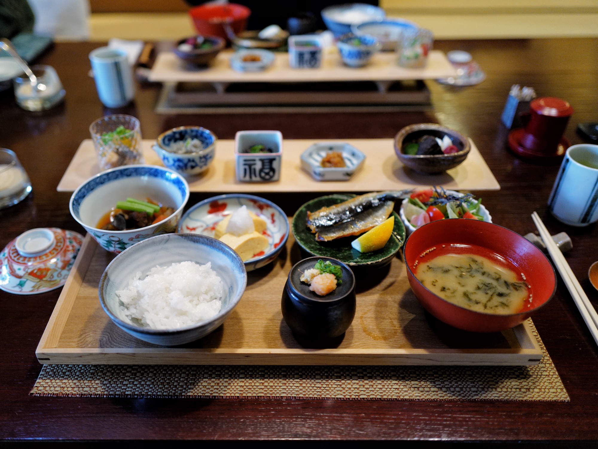 Breakfast at Murata, like dinner, was served at the residents-only restaurant Saihido. When checked in the day before, we confirmed the breakfast time with the staff and chose the latest slot at 8:00 a.m., planning to sleep in as much as possible.