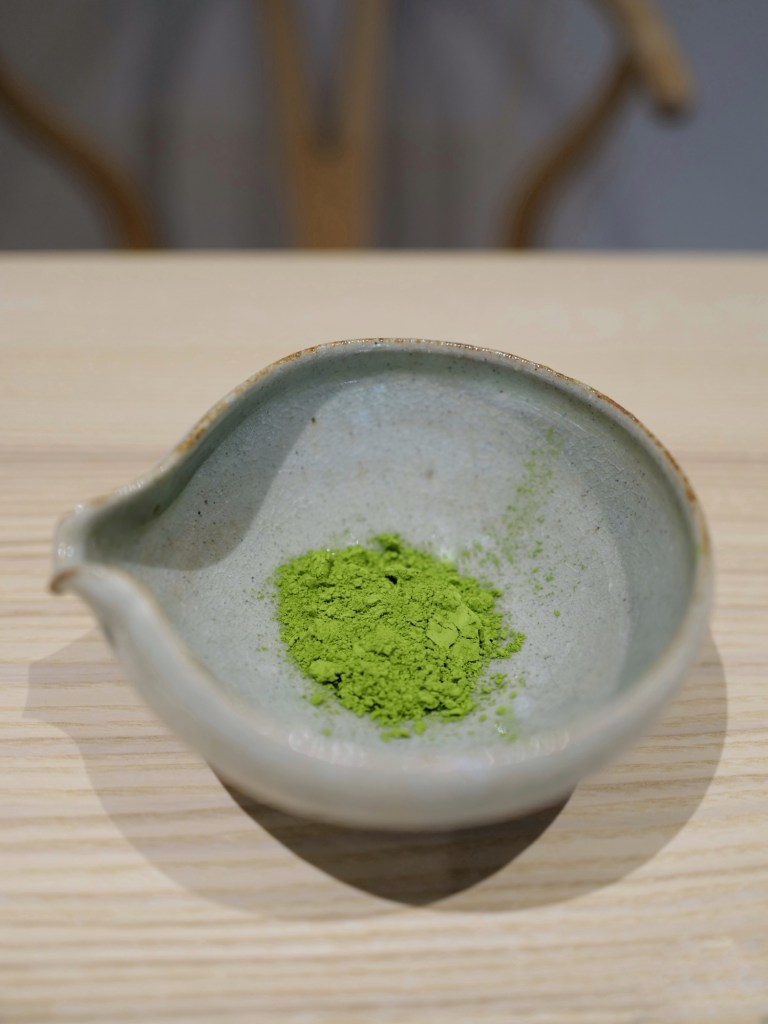 The kit I purchased includes a katakuchi (spouted) matcha bowl, a white bamboo chasen, a white bamboo chashaku (scoop), and a 50g tin of their #1 matcha powder. I also bought an extra chasen stand. Not only was the packaging exquisite, but it also came with a personalized thank-you note with my name on it.