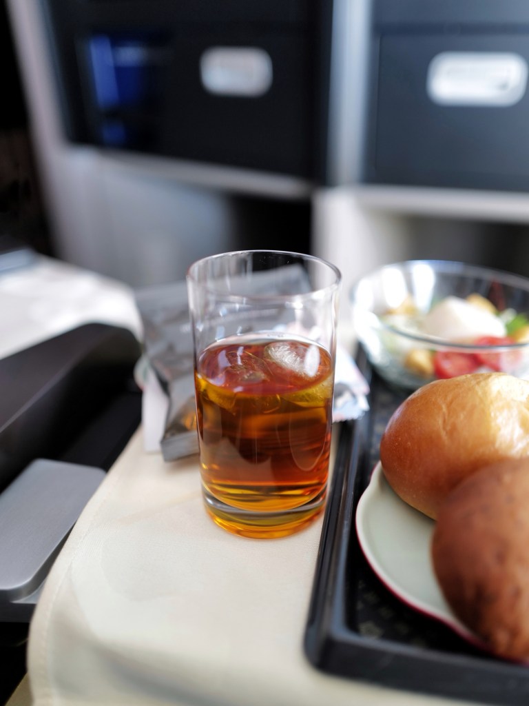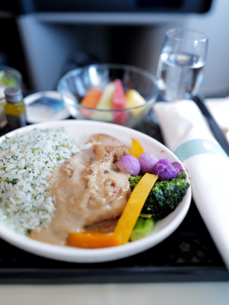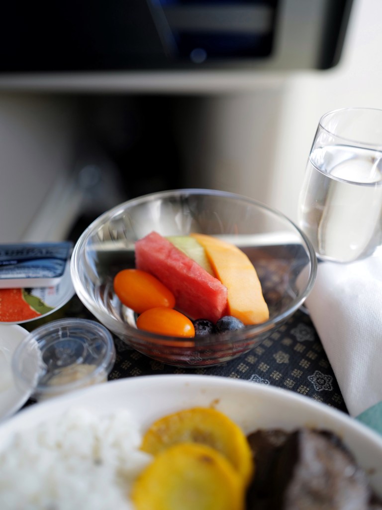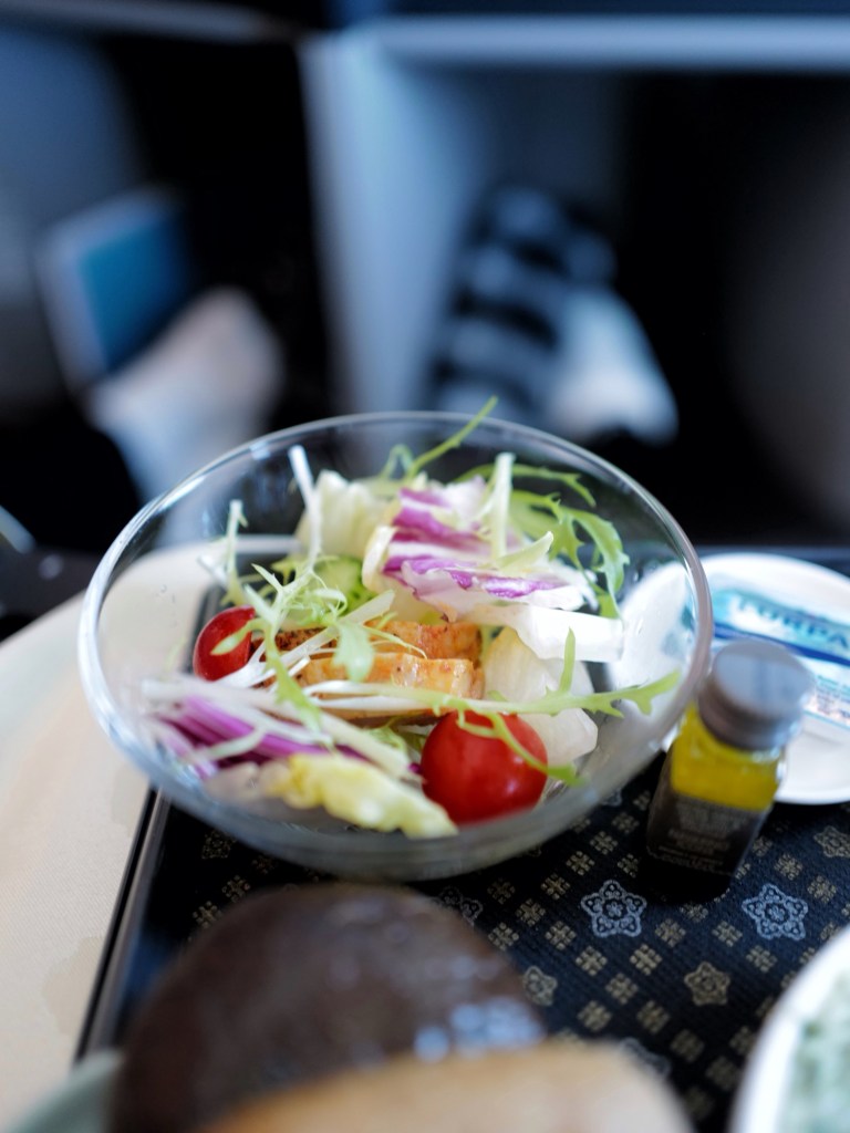 跟著同行朋友買了商務艙的機票,在足量的餐食、寬敞的座位和機上wifi中度過了完全不無聊的時光,簡單記錄下機上餐點,大概是此行唯一的飲食紀錄了🍽️
