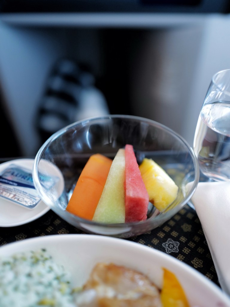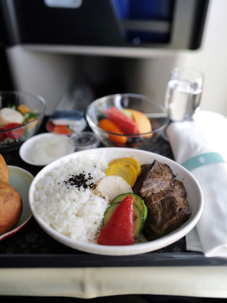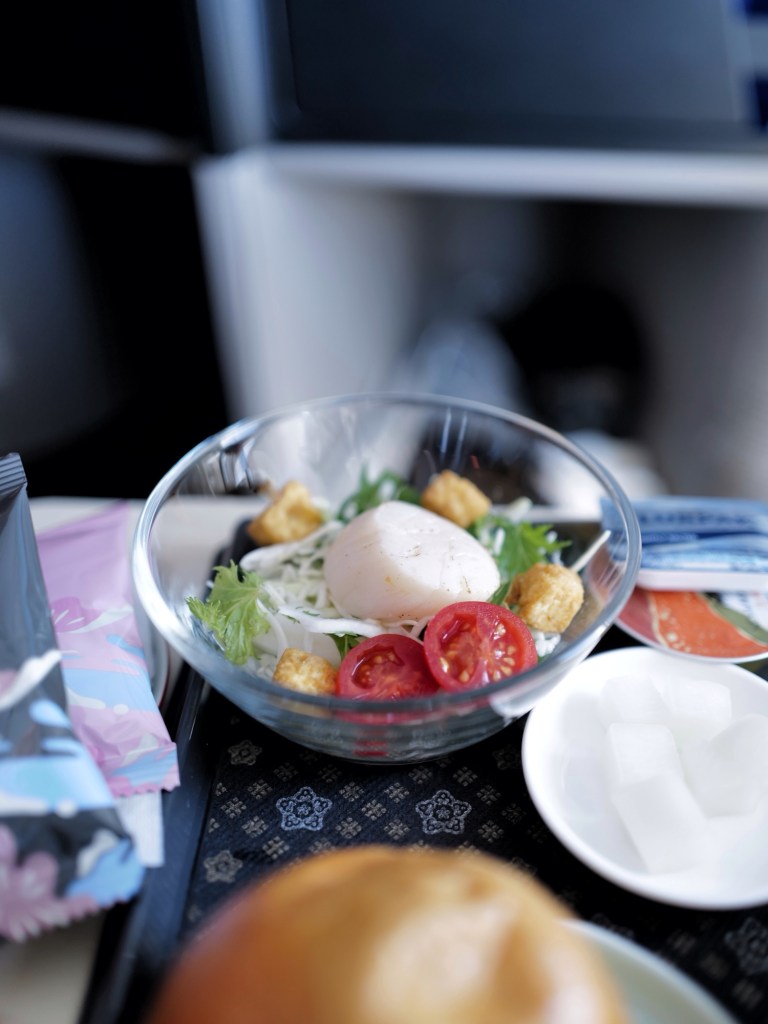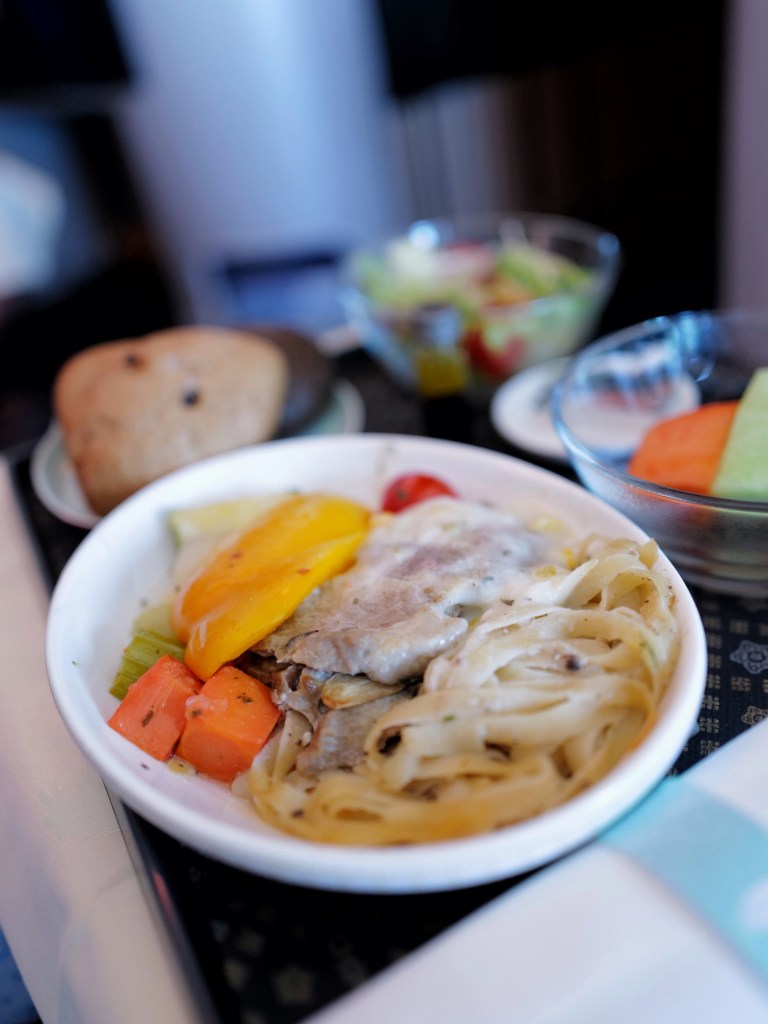 跟著同行朋友買了商務艙的機票,在足量的餐食、寬敞的座位和機上wifi中度過了完全不無聊的時光,簡單記錄下機上餐點,大概是此行唯一的飲食紀錄了🍽️